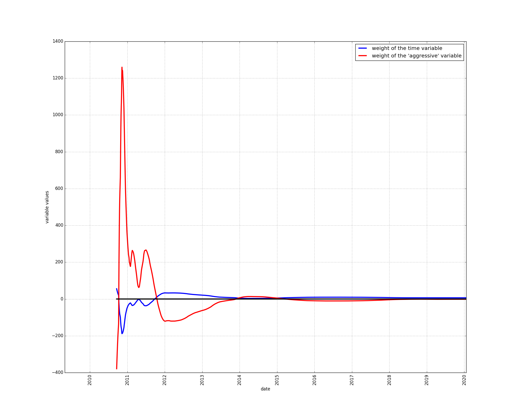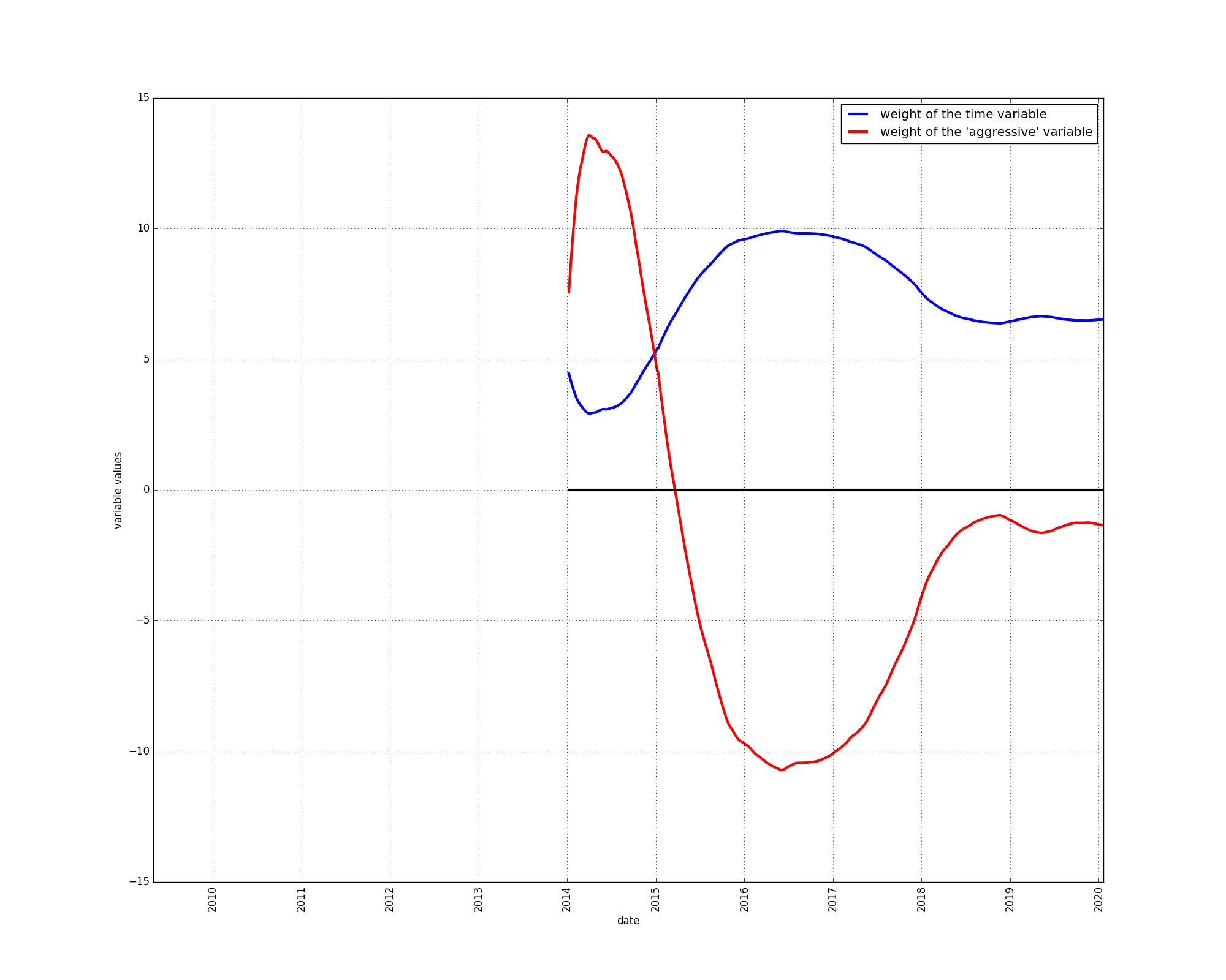 Let us use the decomposed S2F model without steps and examine the evolution of the weightings of the time and the “aggressive” variables: